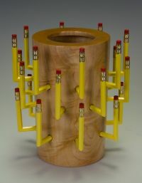 My interest in combining pencils, erasers, sanding disks, cork, Tampico Fiber, and other objects into my turned vessels/objects continues to hold my interest. With these objects and images, I strive to make my work challenging, intriguing, compelling, inspiring, and beautiful.